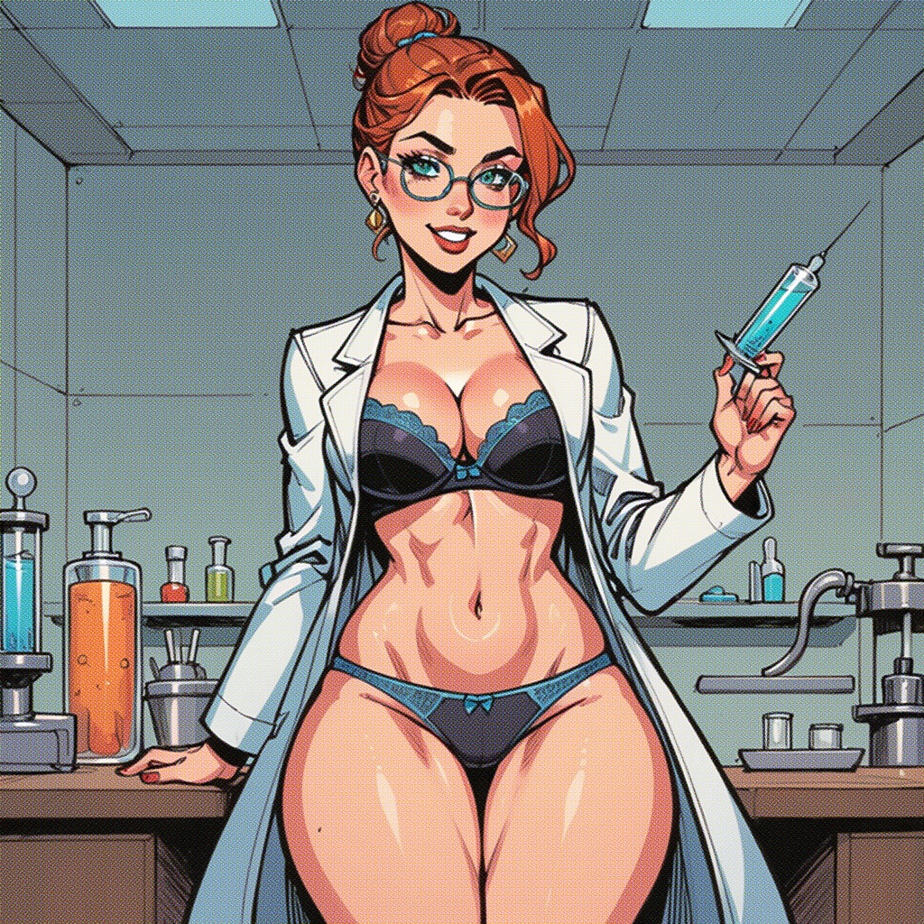 Dr. Emily stepped back, admiring her handiwork with a satisfied smirk. "There," she purred. "You are now my test subject for increased sperm production. I predict that your balls will become a veritable factory, churning out swimmers at an unprecedented rate."